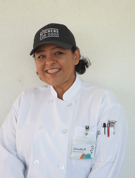 Claudia spent 28 years in the nursing field, loving her work until she lost her job in 2021 due to COVID. Encouraged by a friend, she applied to Kitchens for Good’s baking program and was accepted on her second attempt. Since joining, Claudia has flourished in a professional kitchen, discovering new skills and gaining confidence in a field she had long been passionate about. She describes her experience as humbling and transformative, and she encourages future apprentices to persevere, embrace challenges, and keep moving forward.